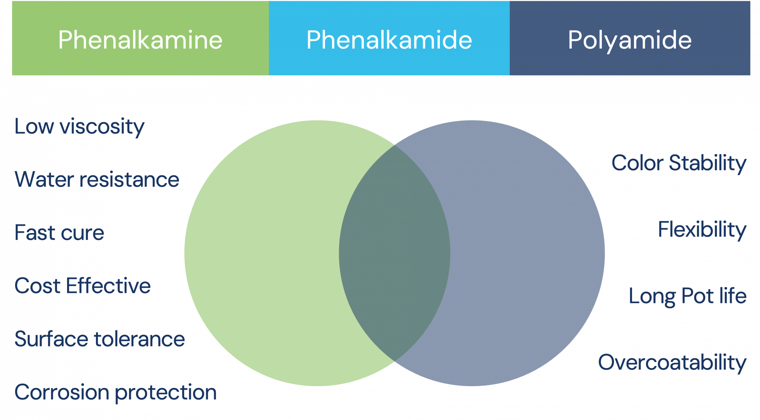 Phenalkamide curing agents offer a step up in performance, reliability, and cost efficiency across many applications traditionally served by polyamides. Their broad application latitude allows manufacturers to streamline formulations, enabling a single product to perform across diverse conditions and end uses.